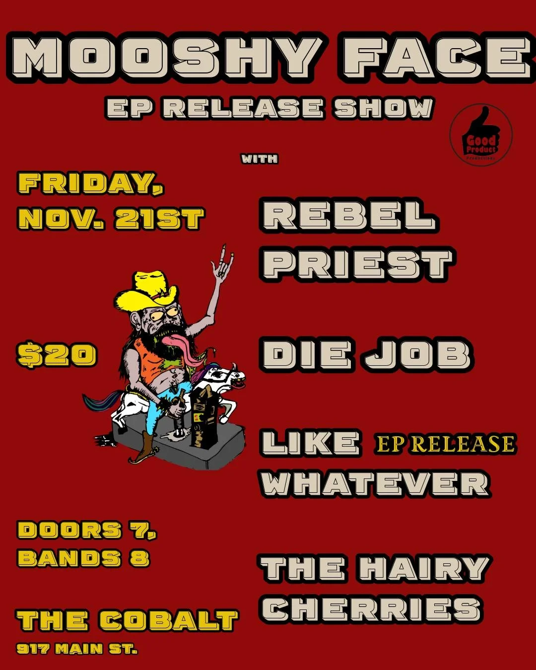 With MOOSHY FACE, REBEL PRIEST, DIE JOB,